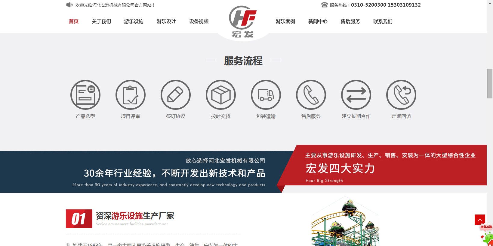 公司生產(chǎn)的“宏發(fā)”牌系列過山車,觀覽車(摩天輪),空中飛翔及深受游客喜歡的豪華轉(zhuǎn)馬、章魚、阿拉伯飛系列的中型游樂設(shè)備,為擴(kuò)大游樂設(shè)備的開發(fā)與生產(chǎn)于2014年初與北京長城聯(lián)名思力科技有限公司強(qiáng)強(qiáng)聯(lián)合,形成集研制、設(shè)計(jì)、開發(fā)生產(chǎn)的戰(zhàn)略伙伴。